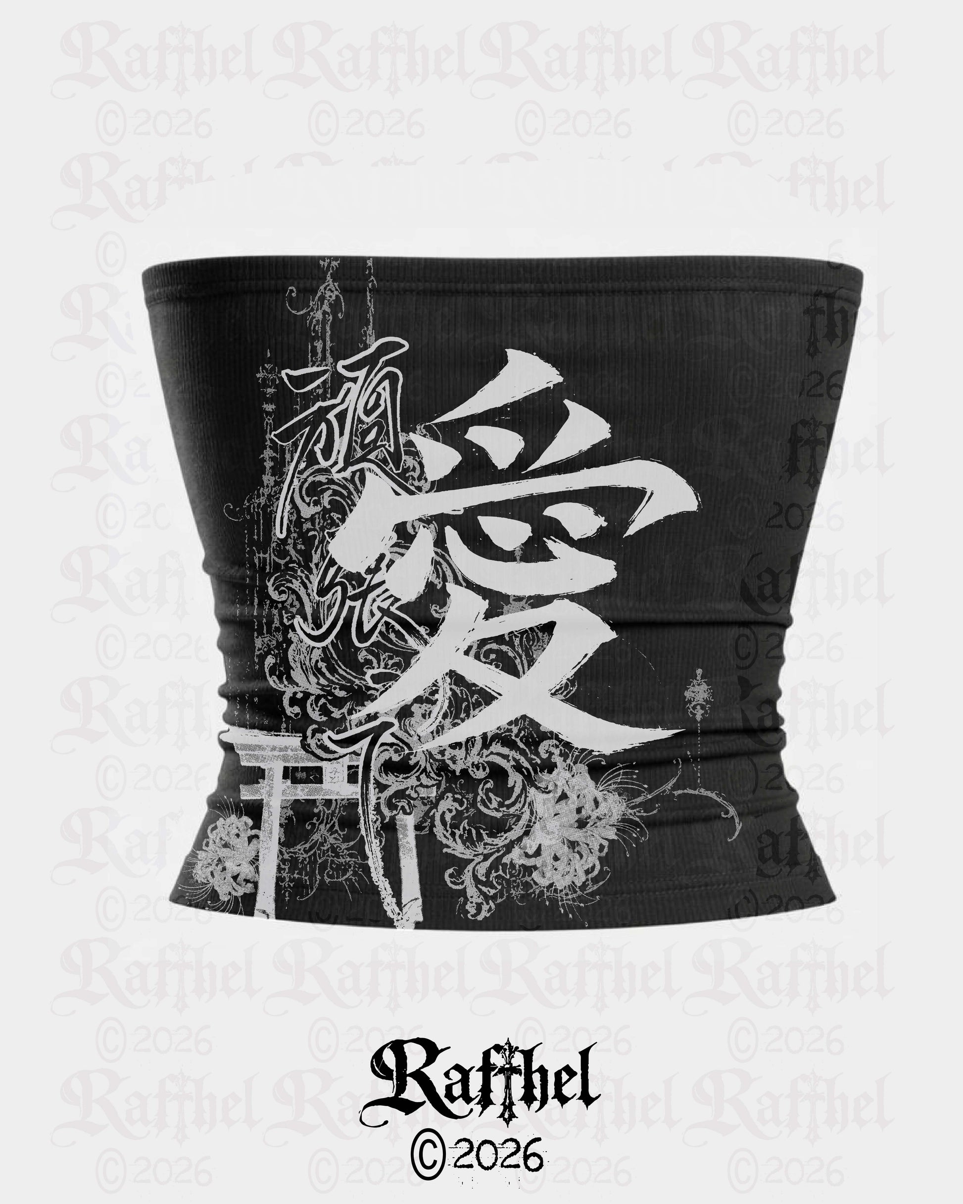 Diseño de composición vertical con tipografía de inspiración japonesa como elemento central. Se integra con detalles florales y un torii en la base, creando un balance visual entre tradición y gráfica contemporánea..